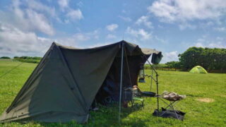 私は将来的には、キャンプ場で焚き火や調理を楽しみ、寝るときはキャンピングカーを考えています。そういうときにパップテントの風防なら、10分くらいで設営できるので。