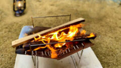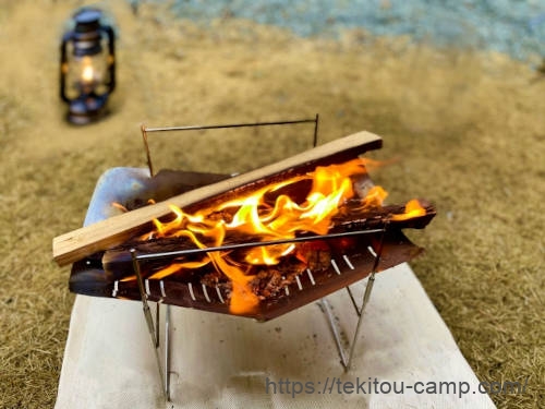 見た目は小さくて軽そうですが、実はずっしり重いかもしれません。もちろん薪ストーブとしては、全部込みで2.6kg以下の軽量な部類。見た目は手のひらサイズなので、キャンピングカーの収納庫等に入れておけそう。