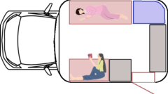 最近はバンコンやライトキャブコンを中心に横向きシートも流行りだけど、やっぱりテーブルを囲める対面が良いですよ。お子さんがいらっしゃるなら、チャイルドシートは前向きのあるシートじゃなきゃ。